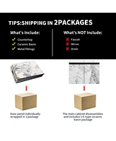 Declutter your bathroom with our sleek Wall-Mounted Vanity. Its two doors provide ample storage while the floating design frees up floor space. The durable material withstands moisture and scratches, while the soft-closing hinges prevent slamming. The ceramic sink complements the vanity, adding a touch of elegance to your daily routine.