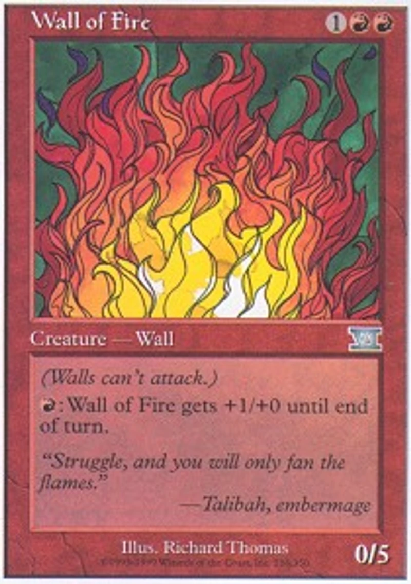Defender (This creature can't attack.) R Wall of Fire gets +1/+0 until end of turn.
