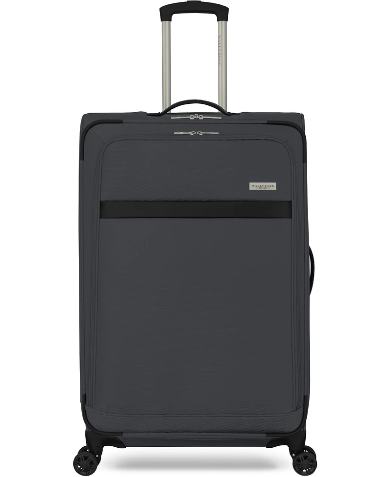 The WallyBags Stratford expandable spinner is great for those who know it's never just business or pleasure. This lightweight, yet durable case maneuvers easily in all directions with its recessed 8-wheel spinner system. The aluminum trolley handle adjusts to your height, and the 2"" expansion provides extra packing capacity. The interior has four zippered pockets, a removable toiletry kit and 2 elastic pockets. With plenty of space for all your packing needs and an adjustable packing divider that secures clothing in place, this spinner is sure to provide a premium packing experience. The exterior features a large front gusseted pocket and a zippered accessory pocket for any additional or last-minute items. This 29"" expandable spinner is check-in friendly and built to withstand frequent travel. Whether traveling by car or by plane, for business or pleasure, this 29"" expandable spinner is great for today's traveler and is the perfect combination of function and fashion. Travel easy knowing you are covered.