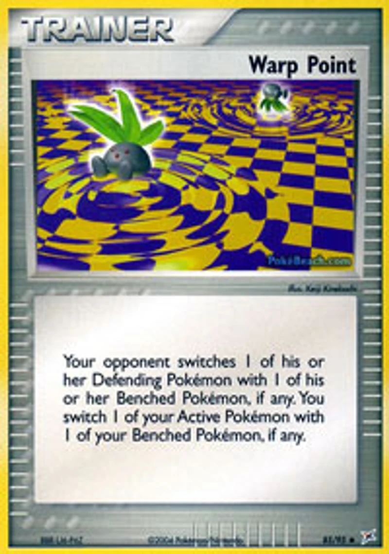 Set: EX Team Magma vs Team Aqua Card Number: 85/95 Rarity: Uncommon Illustrator: Keiji Kinebuchi Card Type: Trainer Name: Warp Point Finish: Regular Manufacturer: The Pokemon Company