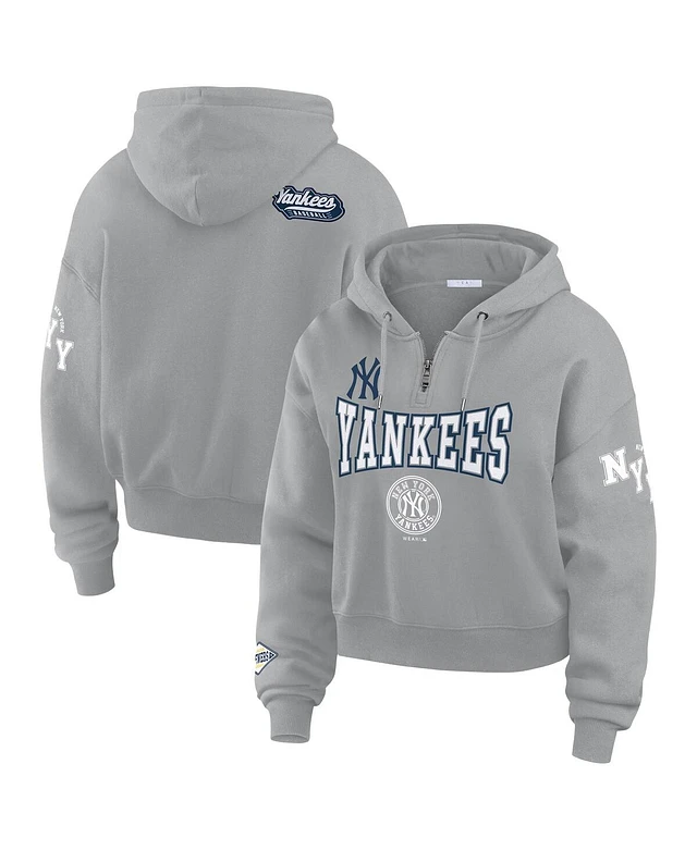 Wear by Erin Andrews Women's Gray New York Yankees Patch Quarter-Zip Hoodie