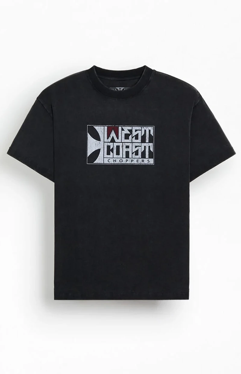 The Iron Block T-Shirt from West Coast Choppers is a rugged, vintage-inspired tee with bold, moto-driven style. It features short sleeves, a crew neckline, a worn-in vintage wash, and a West Coast Choppers graphic on the front for an authentic edge.