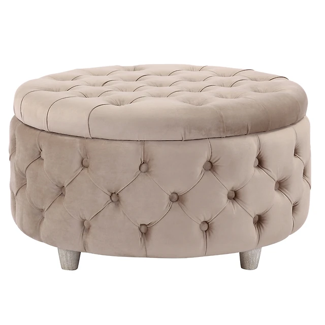 WestinTrends Round Velvet Tufted Storage Ottoman for Living Room Bedroom