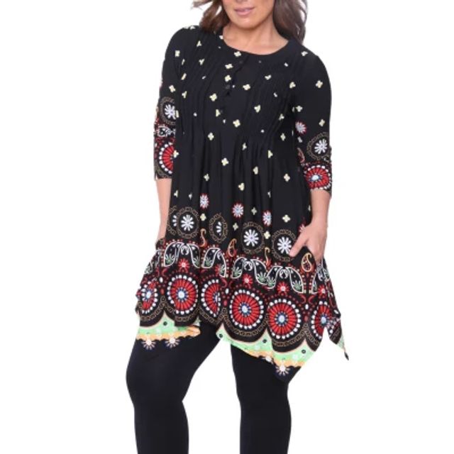 White Mark Plus Womens 3/4 Sleeve Tunic Top