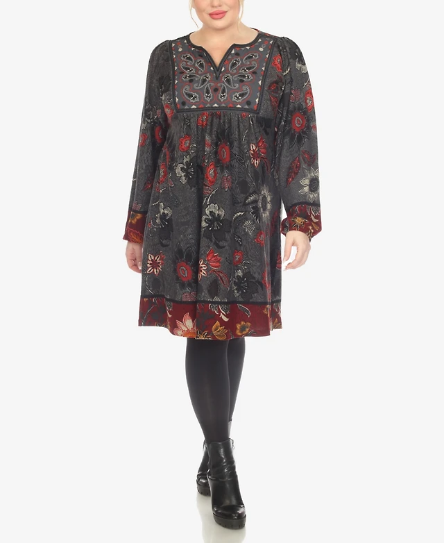 White Mark Plus Paisley Flower Embroidered Sweater Dress