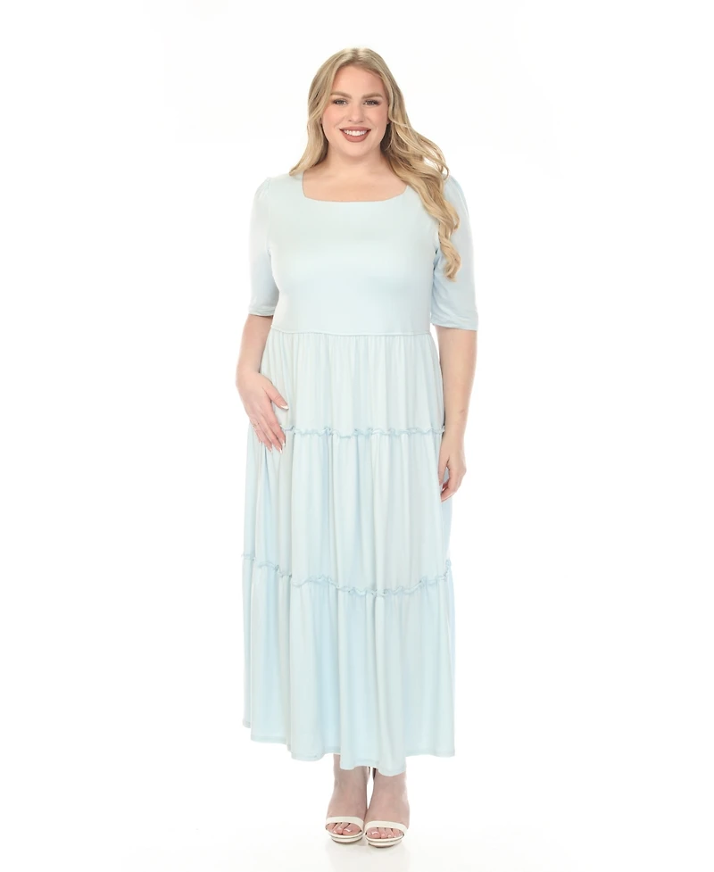 White Mark Plus Square Neck Short Sleeve Tiered Dress