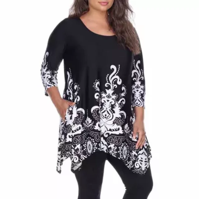 White Mark Plus Womens 3/4 Sleeve Tunic Top