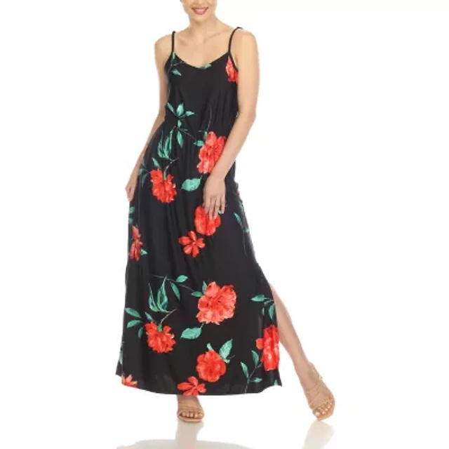 White Mark Tiera Womens Sleeveless Midi Floral Sheath Dress