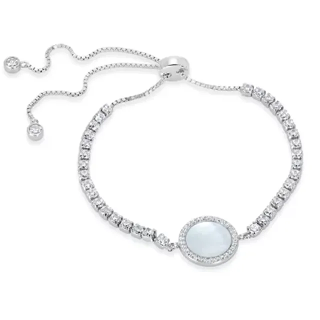White Mother Of Pearl Sterling Silver Round Bolo Bracelet