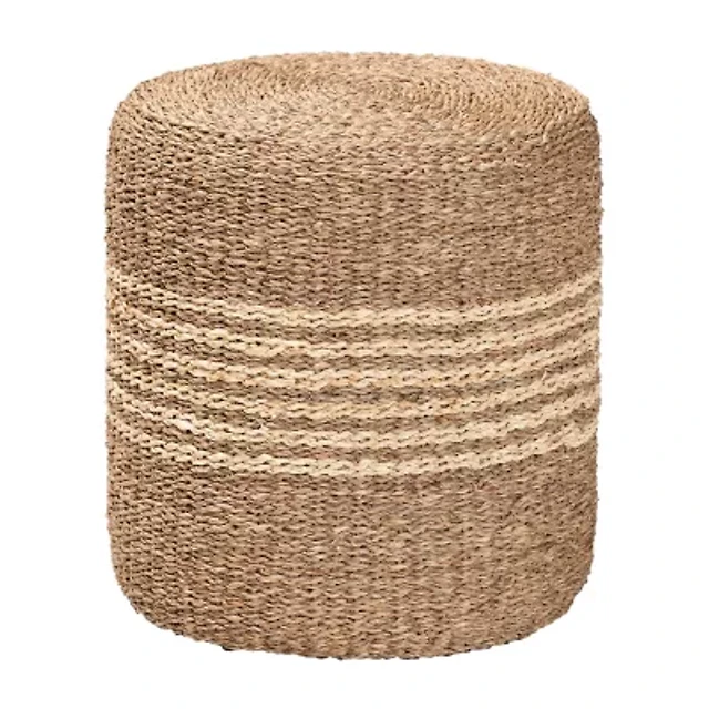 Teak Wood Ottoman Footstool with Braided Rope for Living Room