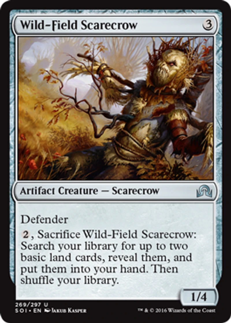 Sacrifice Wild-Field Scarecrow: Search your library for up to two basic lands