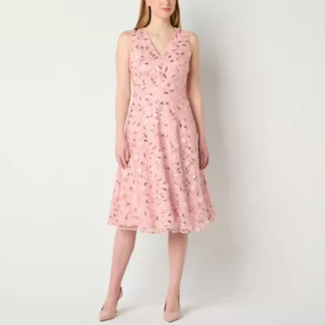 Perceptions Womens Sleeveless Floral Midi Fit + Flare Dress