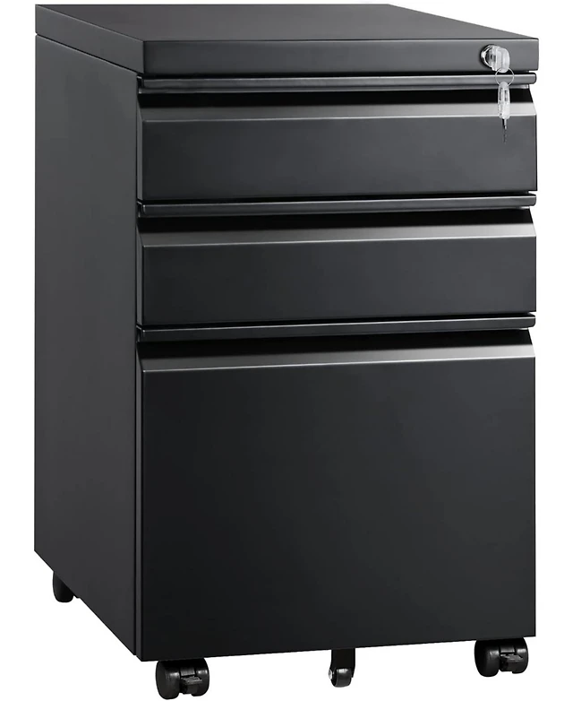 Wlive 3 Drawer Mobile File Cabinet with Lock Under Desk Metal Filing for Legal/Letter/A4 Fully Assembled Except Wheels