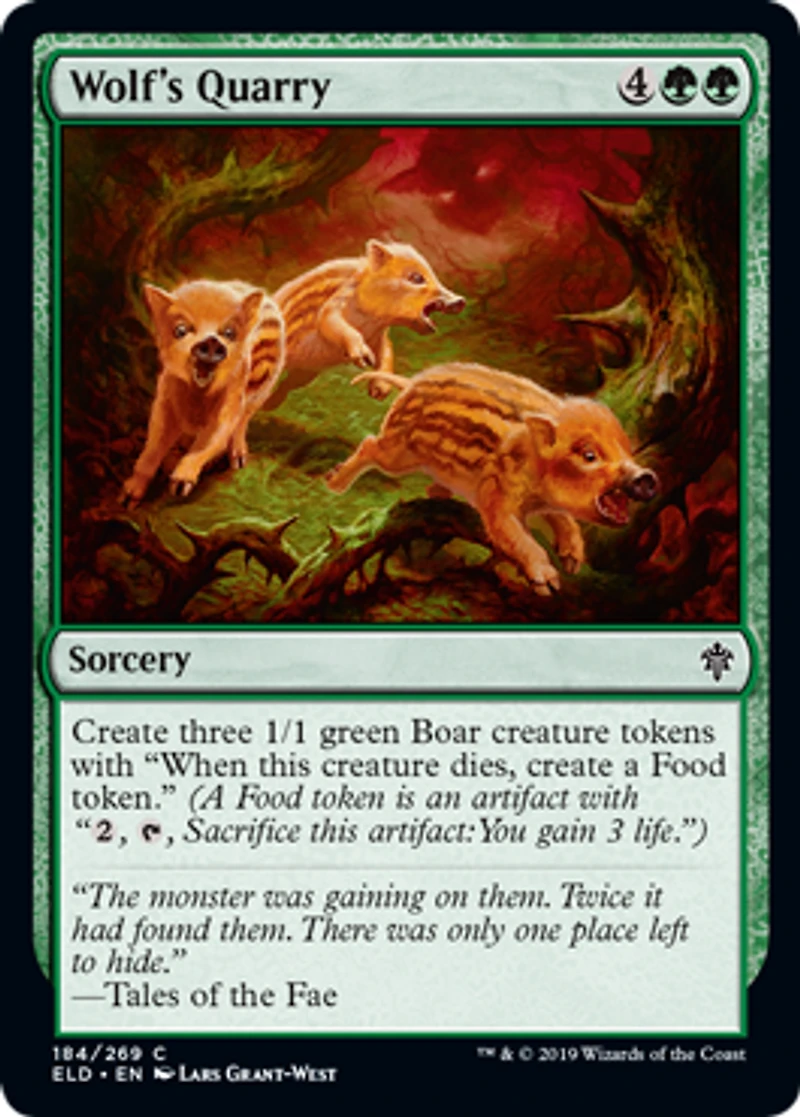 Create three 1/1 green Boar creature tokens with "When this creature dies