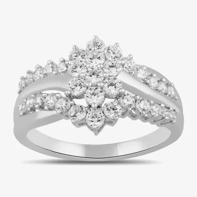 Womens 1 CT. T.W. Lab Grown White Diamond Sterling Silver Cocktail Ring