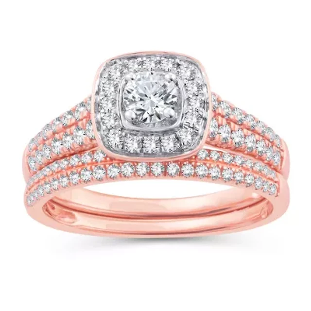Womens 1 CT. T.W. Natural White Diamond 10K Gold Rose Cushion Bridal Set