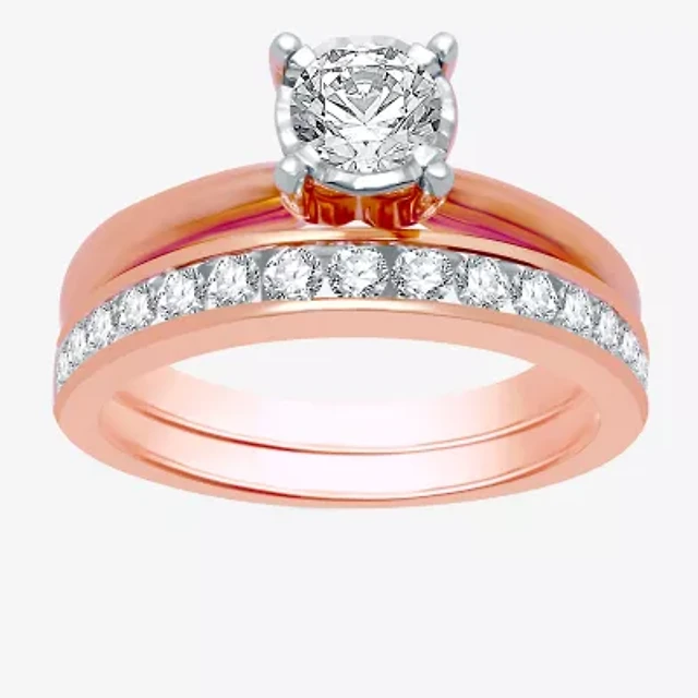 Womens 1 CT. T.W. Natural White Diamond 14K Rose Gold Round Bridal Set