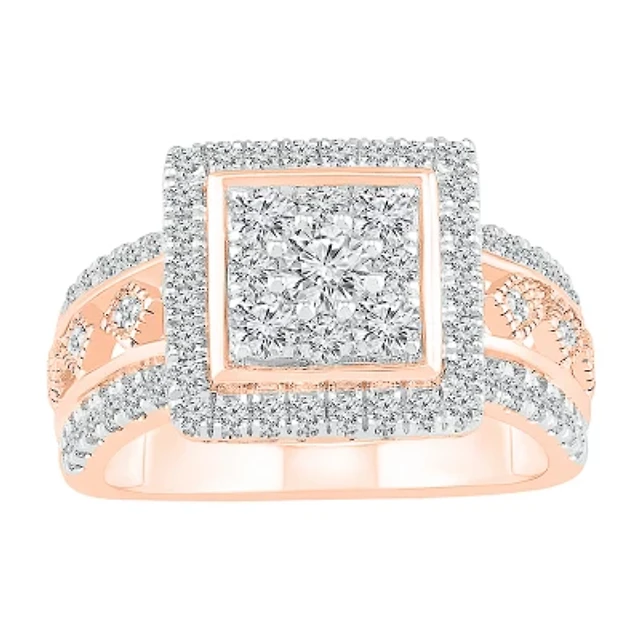 Womens 1 CT. T.W. Natural White Diamond 10K Rose Gold Square Halo Cocktail Ring