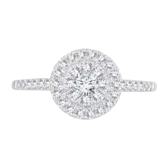 Womens 1/ CT. T.W. Natural White Diamond 14K Gold Round Side Stone Halo Engagement Ring