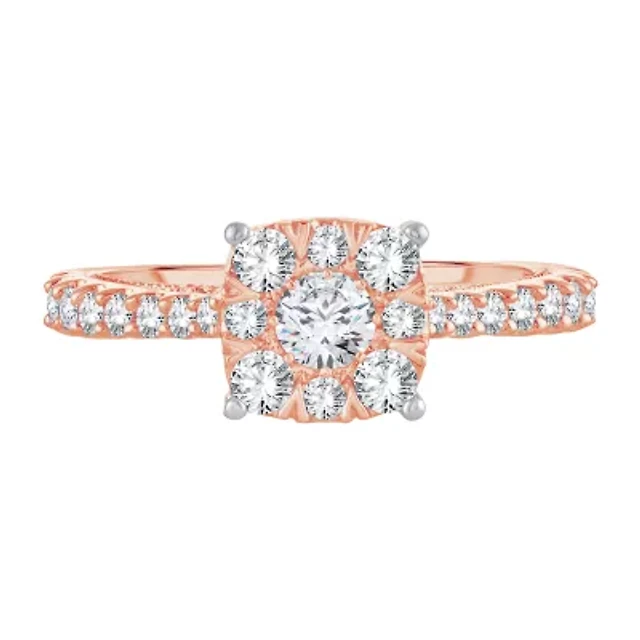 Womens 1 CT. T.W. Natural White Diamond 14K Rose Gold Cushion Engagement Ring