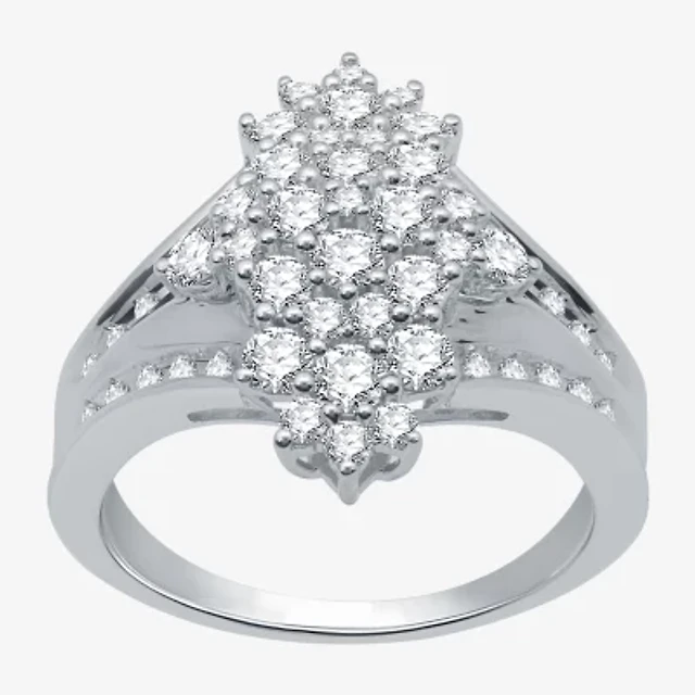 Womens 1 CT. T.W. Lab Grown White Diamond Sterling Silver Cocktail Ring