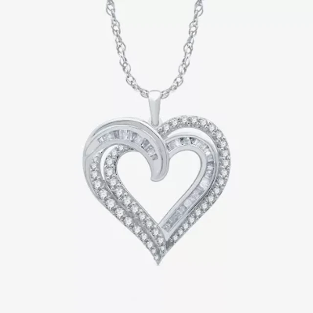 Womens 1/ CT. T.W. Lab Grown White Diamond Sterling Silver Heart Inch Pendant Necklace