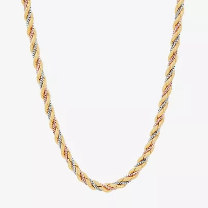 Womens 10K Tri-Color Gold 18 Inch Rope Chain Necklace