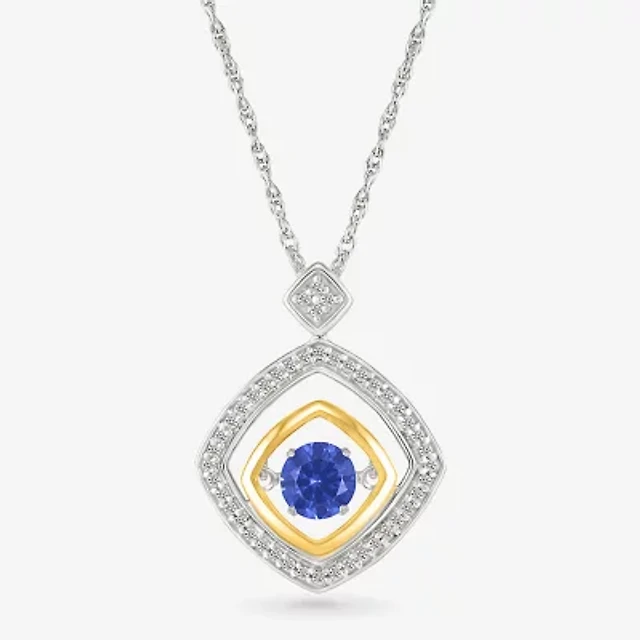 Womens Lab Grown Blue & 1/5 CT. T.W. Lab Grown White Diamond Sapphire Sterling Silver Pendant Necklace