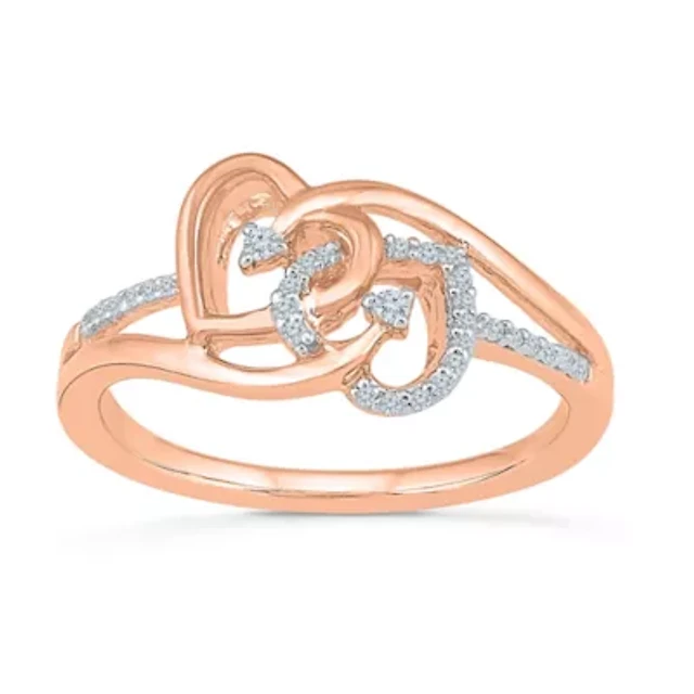 Womens 1/10 CT. T.W. Natural White Diamond 14K Rose Gold Over Silver Sterling Silver Heart Halo Bypass Cocktail Ring
