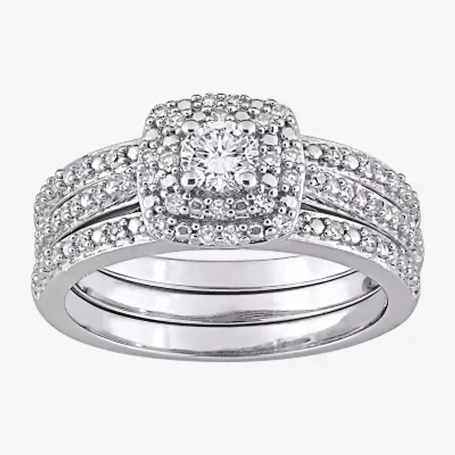 Womens 1/2 CT. T.W. Natural White Diamond Sterling Silver Cushion Side Stone Halo Bridal Set