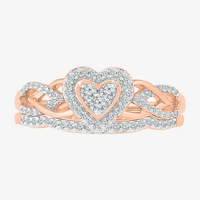 Womens 1/3 CT. T.W. Natural White Diamond 10K Rose Gold Heart Halo Bridal Set