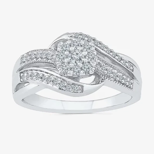 Womens 1/3 CT. T.W. Natural White Diamond Sterling Silver Round Cushion Side Stone Crossover Engagement Ring