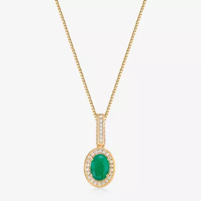 (J-K/I2-I3) Womens 1/6 CT. T.W. Genuine Green Emerald 10K Gold 18 Inch Pendant Necklace