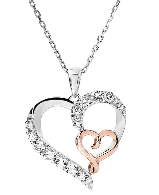 Sterling Silver 18K Rose Gold Plated Heart Pendant Necklace