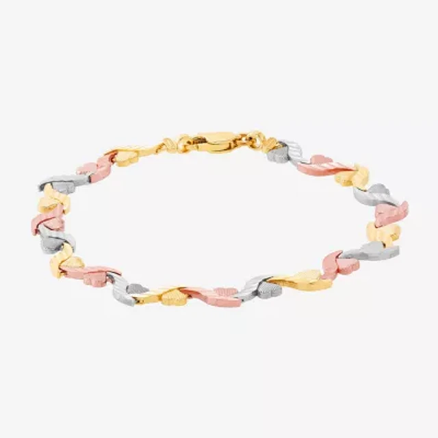 Womens 14K Tri-Color Gold Solid 7.5 Inch Link Bracelet