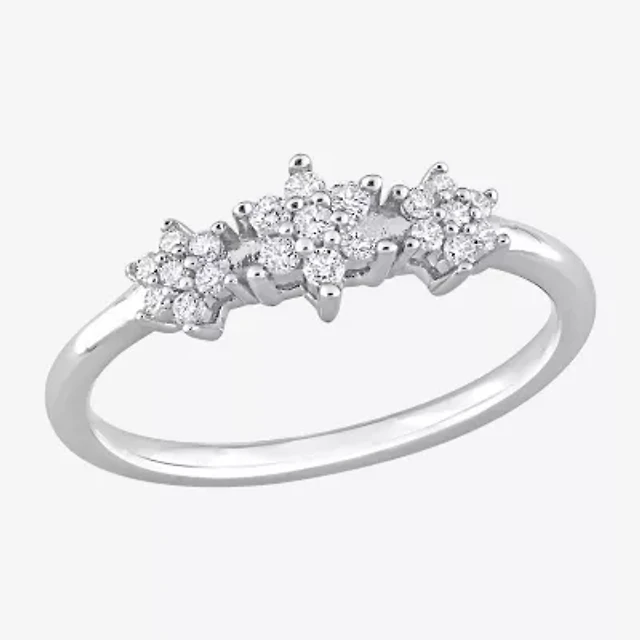 Womens Diamond Accent Natural White Sterling Silver Flower Delicate Stackable Ring