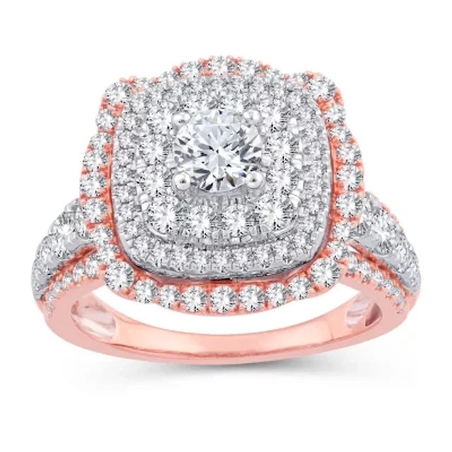 Womens 2 CT. T.W. Natural White Diamond 14K Gold Rose Cushion Engagement Ring