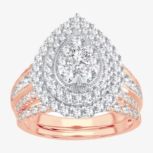 Signature By Modern Bride Womens 2 CT.T.W. Natural Diamond 10K or 14K Gold Pear Side Stone Halo Bridal Set