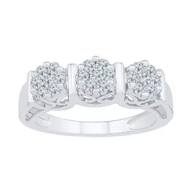 Womens 2MM 5/8 CT. T.W. Natural White Diamond 10K Gold Flower Cluster Band