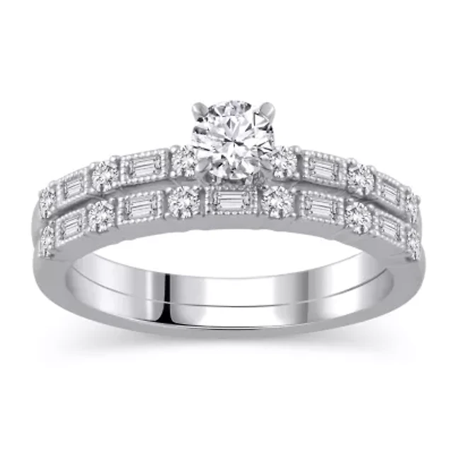 Womens 1 CT. T.W. Natural Diamond 10K White Gold Bridal Set