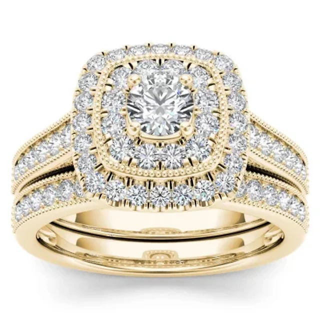 Womens 3/4 CT. T.W. Natural White Diamond 10K Gold Halo Bridal Set