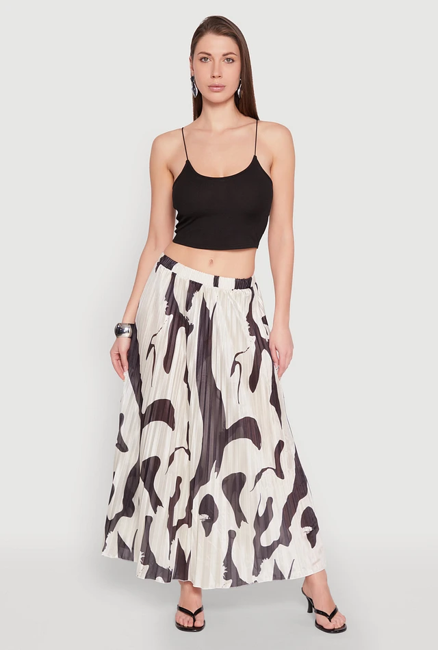 Womens Abstract Print Plisse Maxi Skirt, Multi, Size L