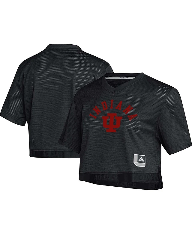 Women's adidas Black Indiana Hoosiers V-Neck Cropped Jersey