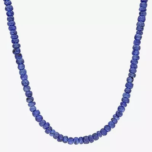 Womens Blue Sapphire Sterling Silver 17 Inch Beaded Necklace