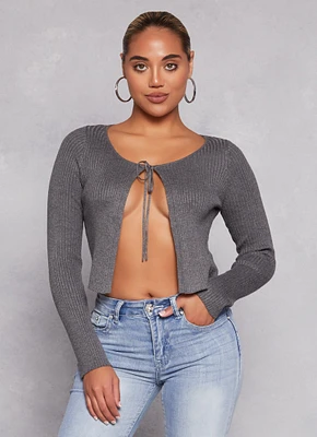 Womens Ribbed Knit Tie Front Cardigan, Grey, Size M
