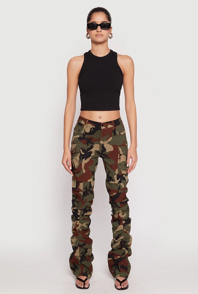 Womens Camouflage Stacked Cargo Pants, Multi, Size L