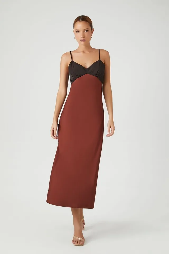 Women's Colorblock Satin Maxi Slip Dress Cappuccino/Sienna