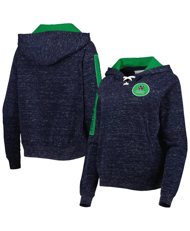 Women's Colosseum Navy Notre Dame Fighting Irish The Devil Speckle Lace-Placket Raglan Pullover Hoodie