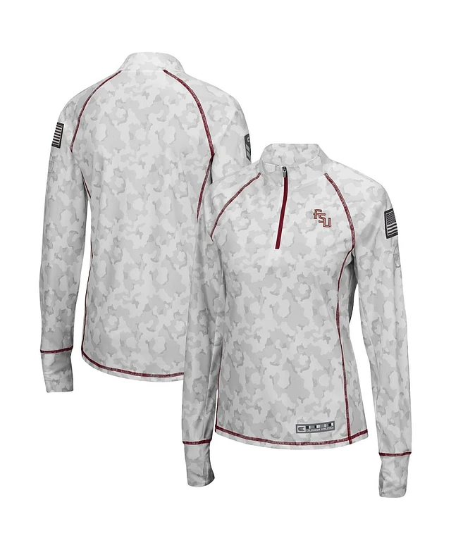 Women's Colosseum White Florida State Seminoles Oht Military-Inspired Appreciation Officer Arctic Camo 1/4-Zip Jacket