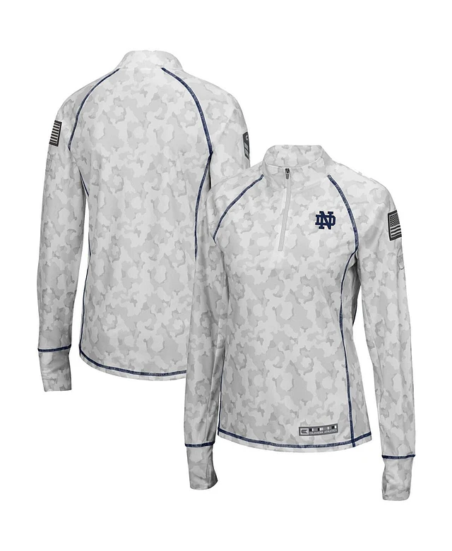 Women's Colosseum White Notre Dame Fighting Irish Oht Military-Inspired Appreciation Officer Arctic Camo Fitted Lightweight 1/4-Zip Jacket